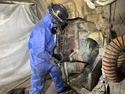 耐火物を新たに更新するために残った耐火物を綺麗に解体します。