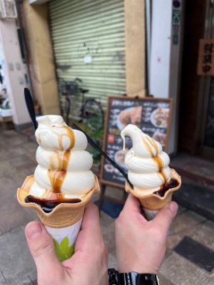 唯一、高知の現場が夜勤だったので夜勤の明け休みで高知城を見に行ったり、暑かったので男二人でアイスを食べたり飲み歩きをしました(笑)